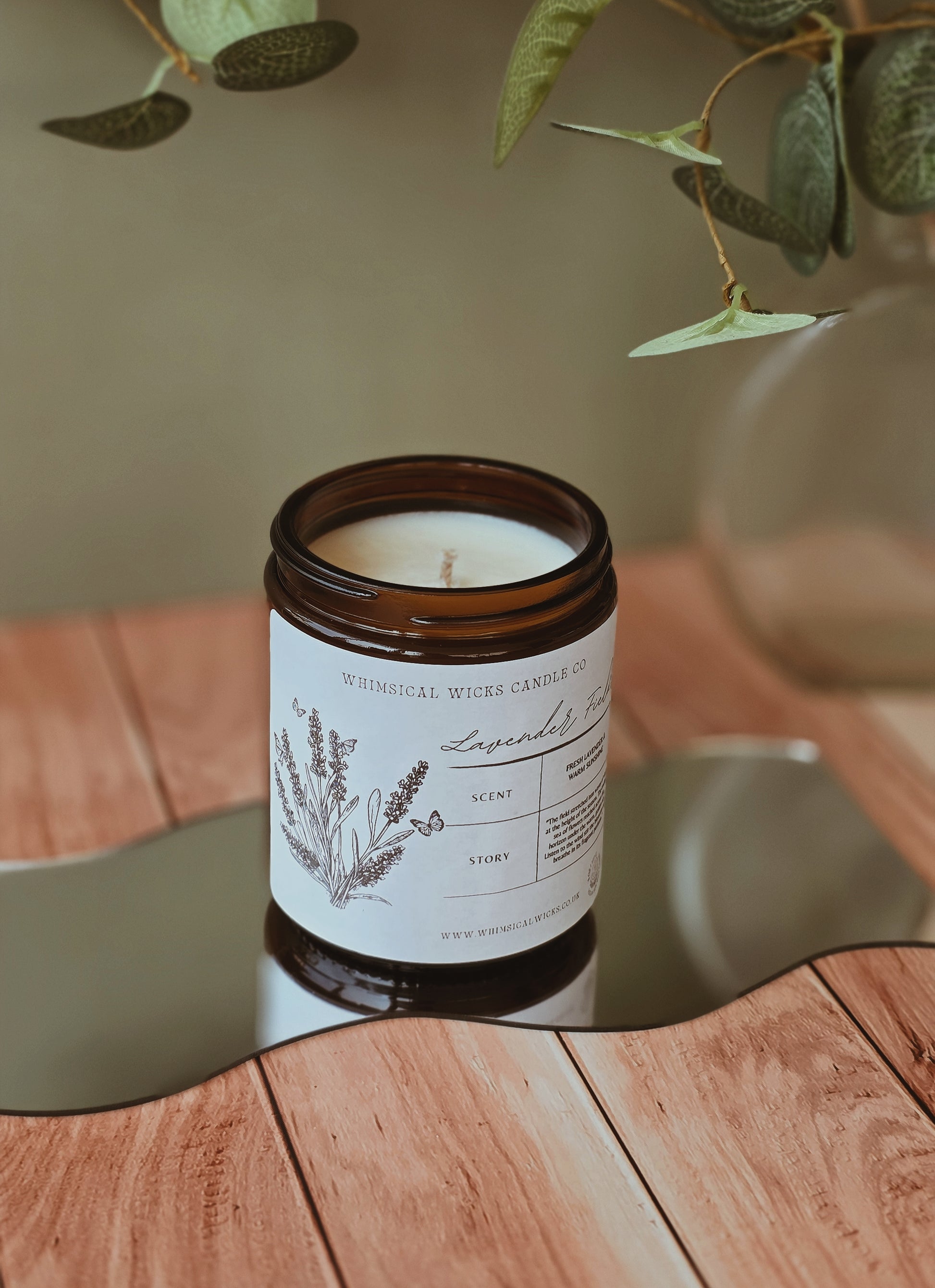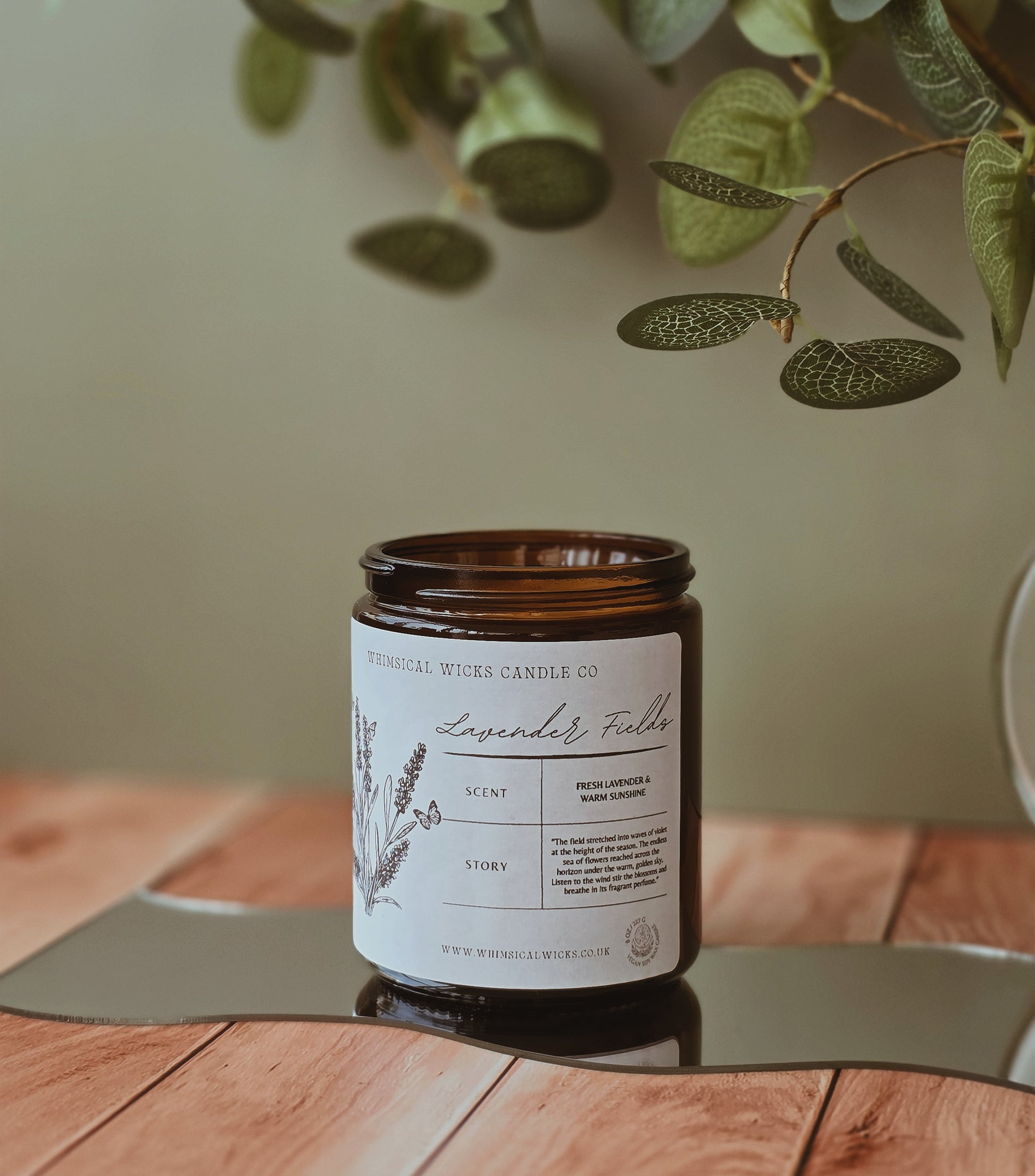 An 8 ounce vegan soy wax candle featuring a fresh blend of lavender and warm sunshine.