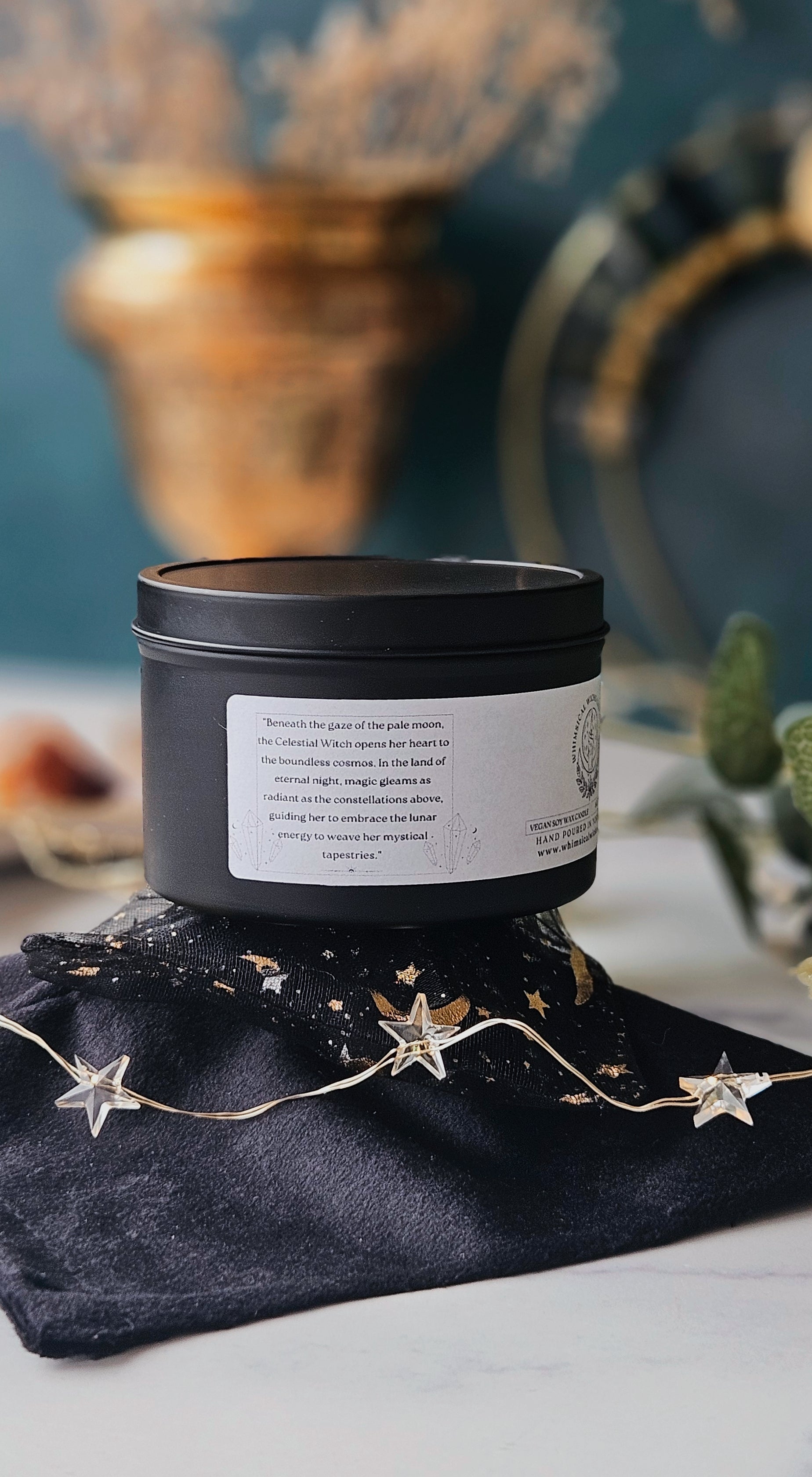 "Beneath the gaze of the pale moon, the Celestial Witch opens hear heart to the boundless cosmos. In the land of eternal night, magic gleams as radiant as the constellations above, guiding her to embrace the lunar energy to weave her mystical tapestries."