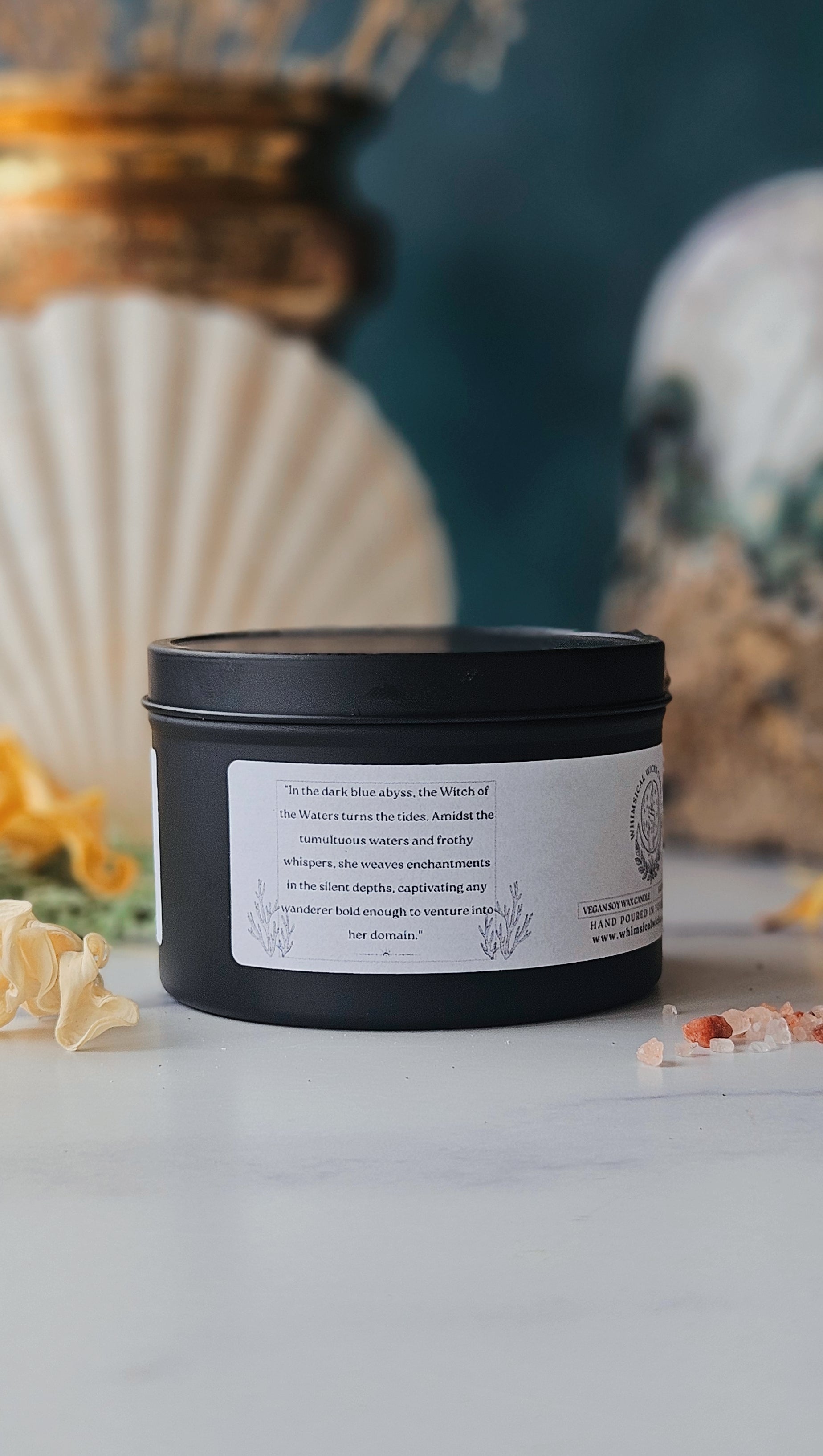"In the dark blue abyss, the Witch of the Waters turns the tide. Amidst the tumultuous waters and frothy whispers, she weaves enchantments in the silent depths, captivating any wanderer bold enough to venture into her domain."